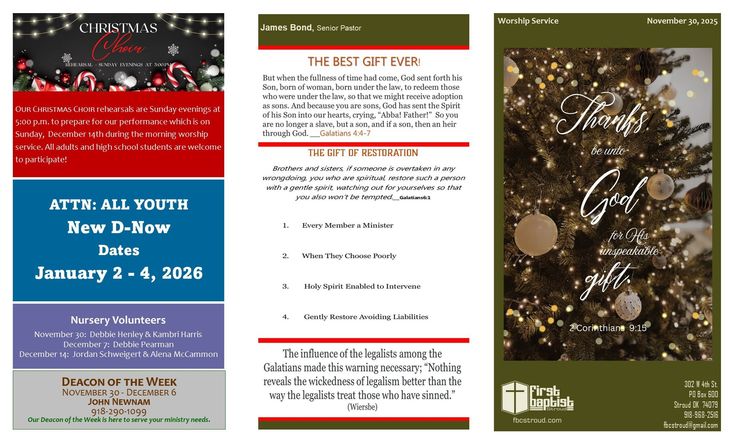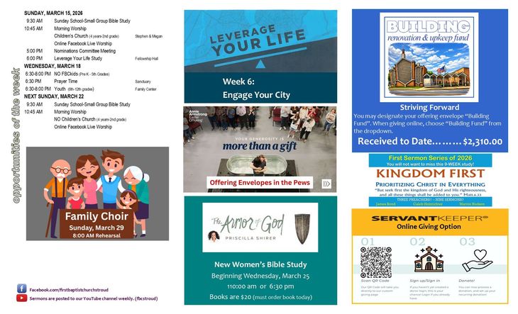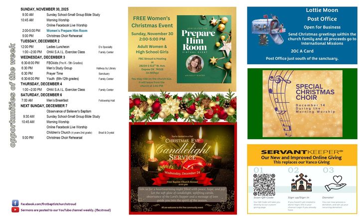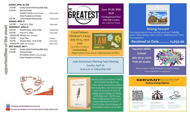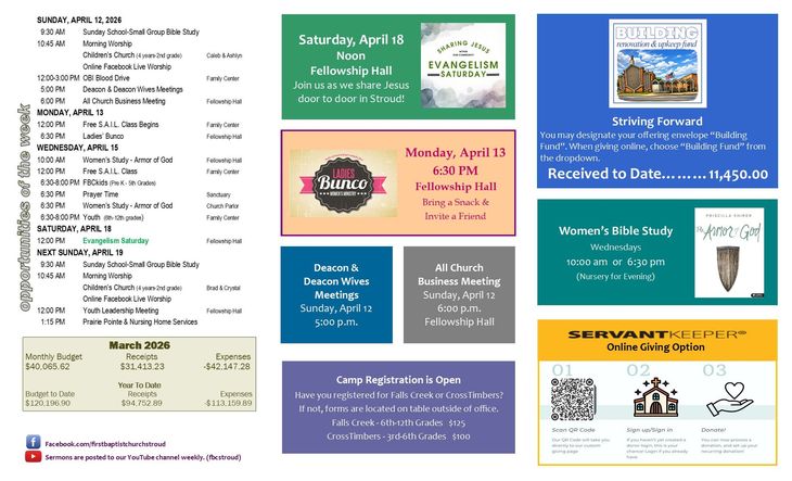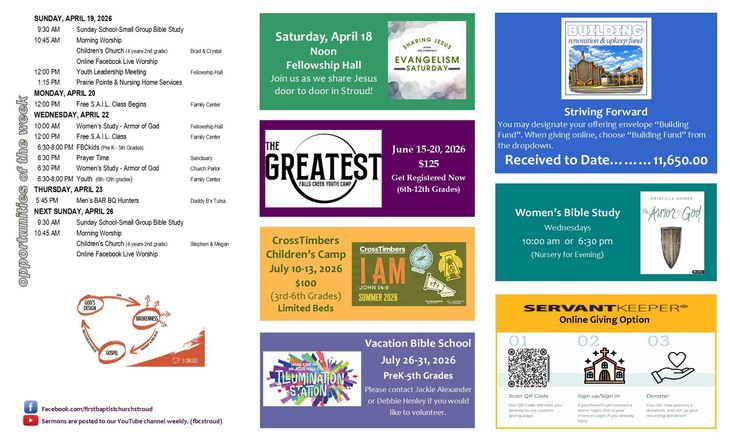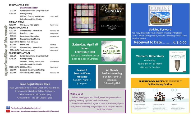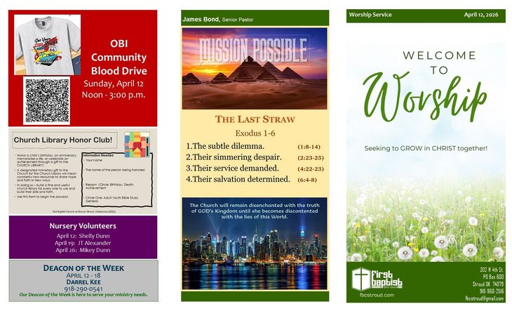 Welcome! If this is your first time visiting our site, we would love to get to know you! Our office is open Monday through Thursday. Stop by for a cup of coffee and a visit. Everyone is welcome to join us for Bible study and Worship! If you aren't able to join us physically, we livestream our Sunday morning service on our Facebook page, First Baptist Church, Stroud.